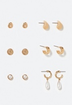 6-Pair Gia Mixed Stud and Hoop Earrings With Pearl Detail